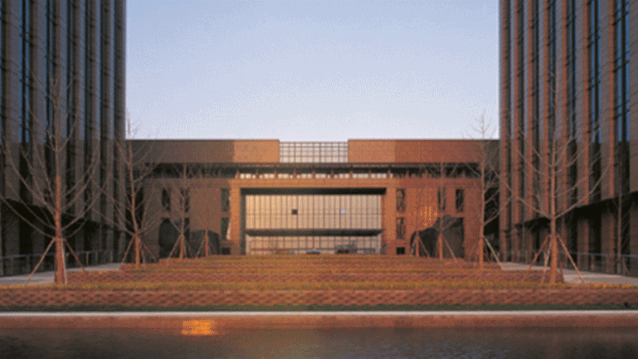 一二期建筑采用石材幕墙,立面风格富有古典韵味;三期建筑采用全玻璃幕墙,强调整体比例的和谐和细部线条的精美。